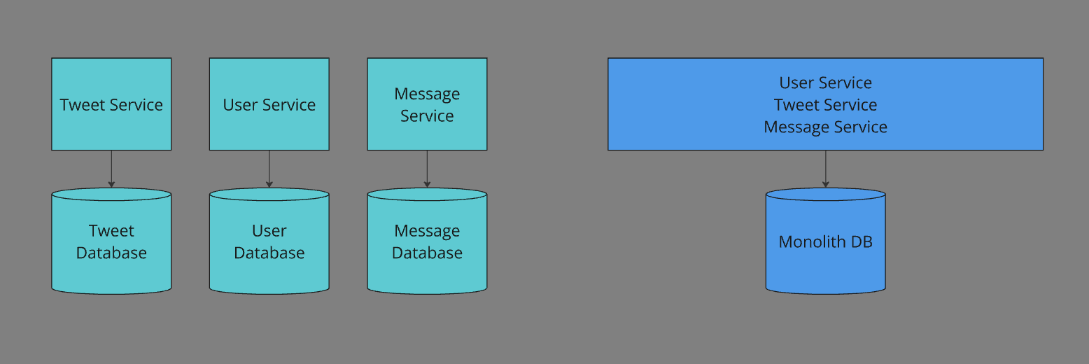 To understand monoliths vs. microservices, we need to first establish the idea of what an application is. In this case, we can consider an application to be any server running code (usually inside of a container). The application is typically provisioned with any infrastructure it needs, such as databases, caches, or queues.